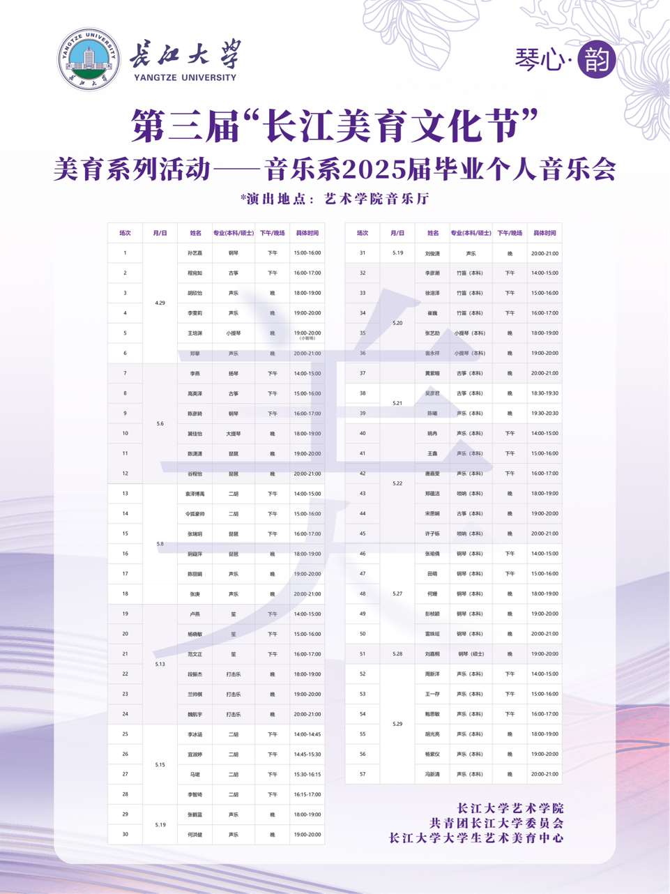 第三届“长江美育文化节”活动持续进行中,艺术学院继续将美育的种子,播撒在长江之畔的春天里。后续美育系列活动有序开展,欢迎各位老师同学前来参观指导!