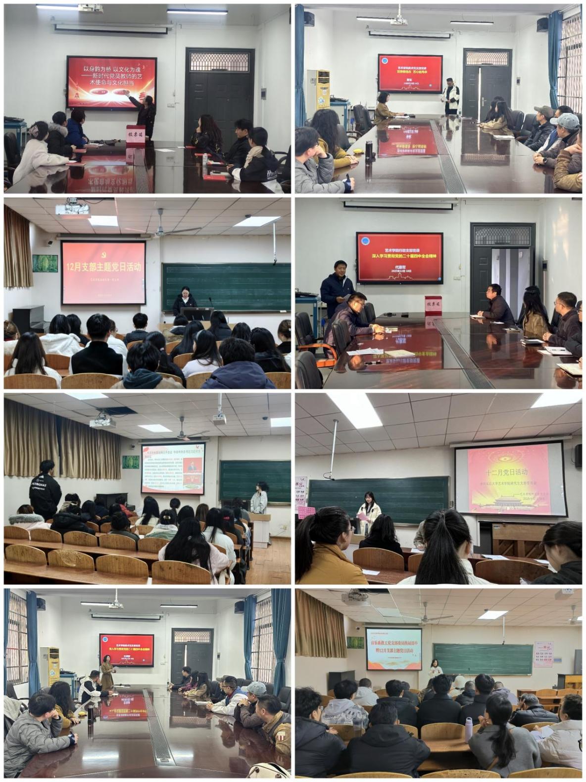 (通讯员 孙岳)为深入贯彻党的二十届四中全会精神,持续深学细悟习近平总书记近期重要讲话和重要指示批示精神,根据《关于开展2025年12月支部主题党日活动的通知》要求,近日,艺术学院各支部有序开展2025年12月主题党日活动。