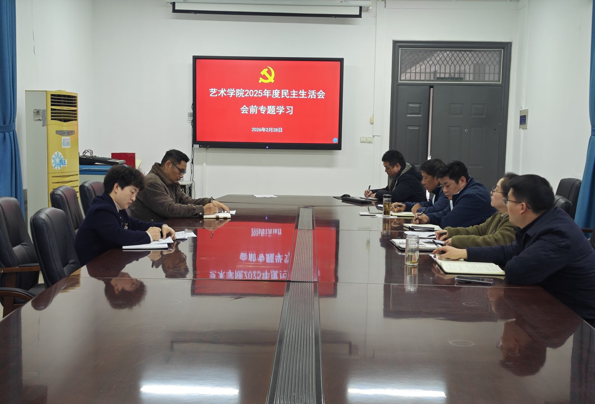 (通讯员 孙岳 摄影 孙岳)为深入学习贯彻党的二十届四中全会精神,巩固拓展深入贯彻中央八项规定精神学习教育成果,扎实做好 2025 年度民主生活会各项准备工作,2 月 28 日上午,艺术学院党委理论学习中心组召开民主生活会前专题学习会。学院党委书记马小佼主持会议并讲话,中心组全体成员参加学习。