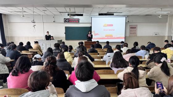 何可可宣读《第八分党校第46期培训班培训工作细则》,详细解读了课程安排、学习要求及考核标准,并着重强调全体学员需严守培训纪律、端正学习态度,以确保培训取得扎实成效。艺术学院音乐QZ251班吴彦君同学代表全体参训学员发言,她结合自身成长历程与入党初心,表达了对党组织的崇敬之情和加入党组织的坚定信念,号召全体学员珍惜此次学习机会,坚定理想信念,锤炼党性修养,以实际行动积极向党组织靠拢。