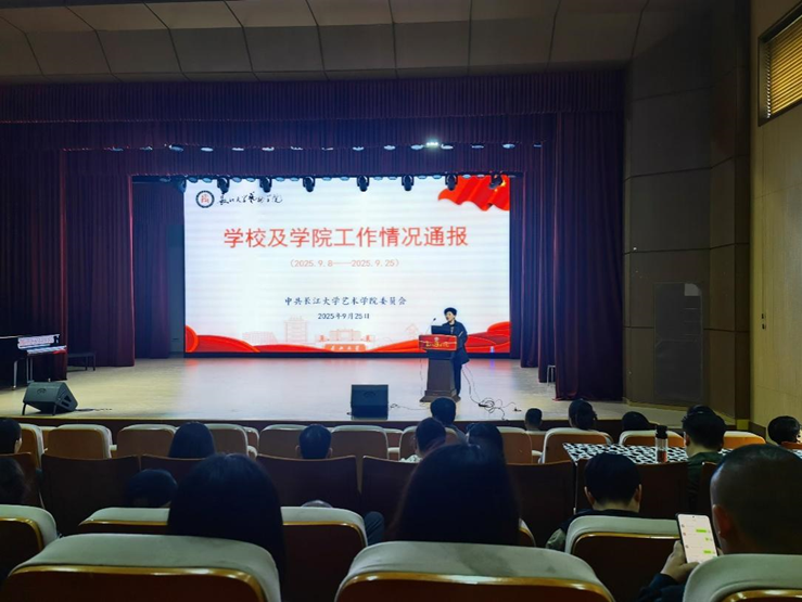 (通讯员 刘磊)9月25日下午,艺术学院在学术报告厅召开了2025年9月全院教职工大会。学院全体教职工参加了本次大会,会议由党委书记马小佼主持。