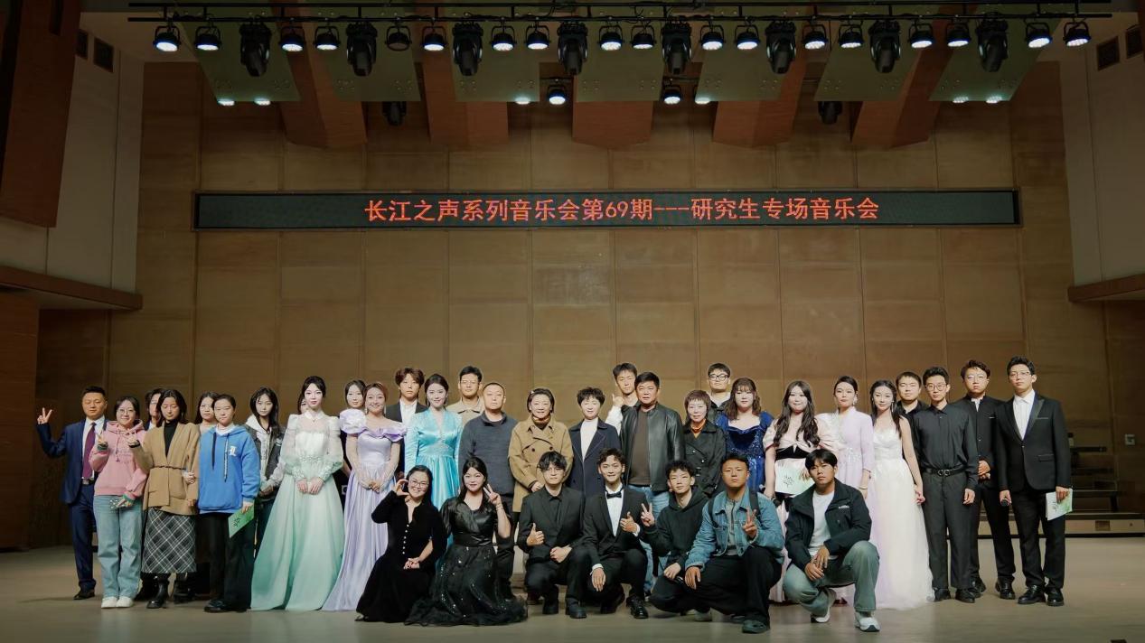 (通讯员 翟文雅)2025年10月23日晚18:30,“长江之声”系列音乐会第69期——音乐系研究生专场音乐会在艺术学院音乐厅成功举办。本场音乐会由三个年级共34名在读研究生共同完成。音乐会曲目包含了独唱、重唱、重奏等不同形式的15首作品。