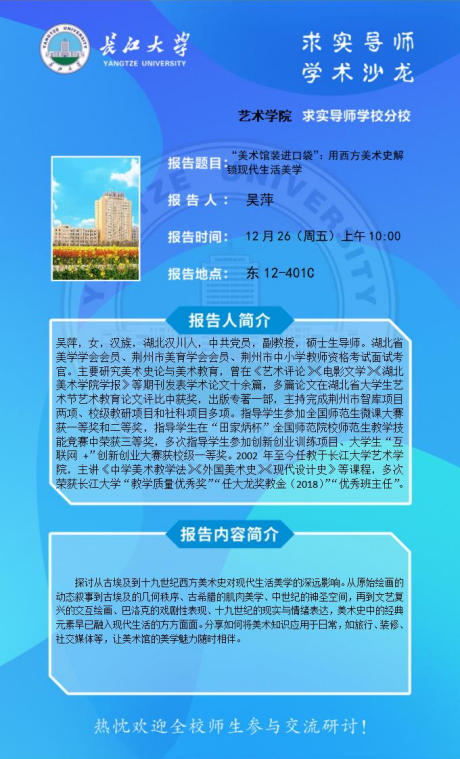 地址:(434023)湖北省荆州市荆州区学苑路1号长江大学东校区