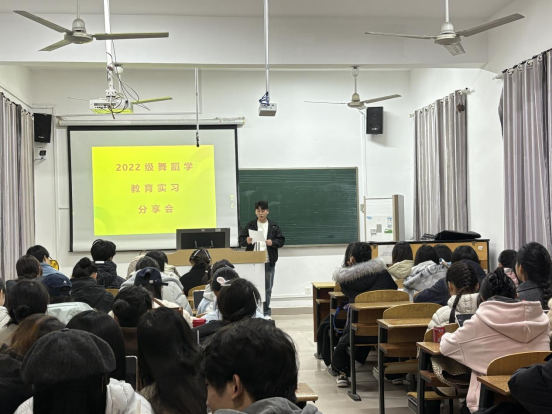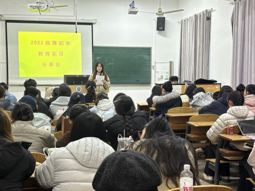 (通讯员陈贝尔)2025年12月8日下午5:30,长江大学艺术学院舞蹈系在Y307教室举办2022级舞蹈学教育实习分享会。分享会由张冬琦老师主持,特邀22级舞蹈学专业优秀实习生代表周煦晨、邓玉轩、蔡贤三位同学为23级全体学生分享教育实习的经历与经验。