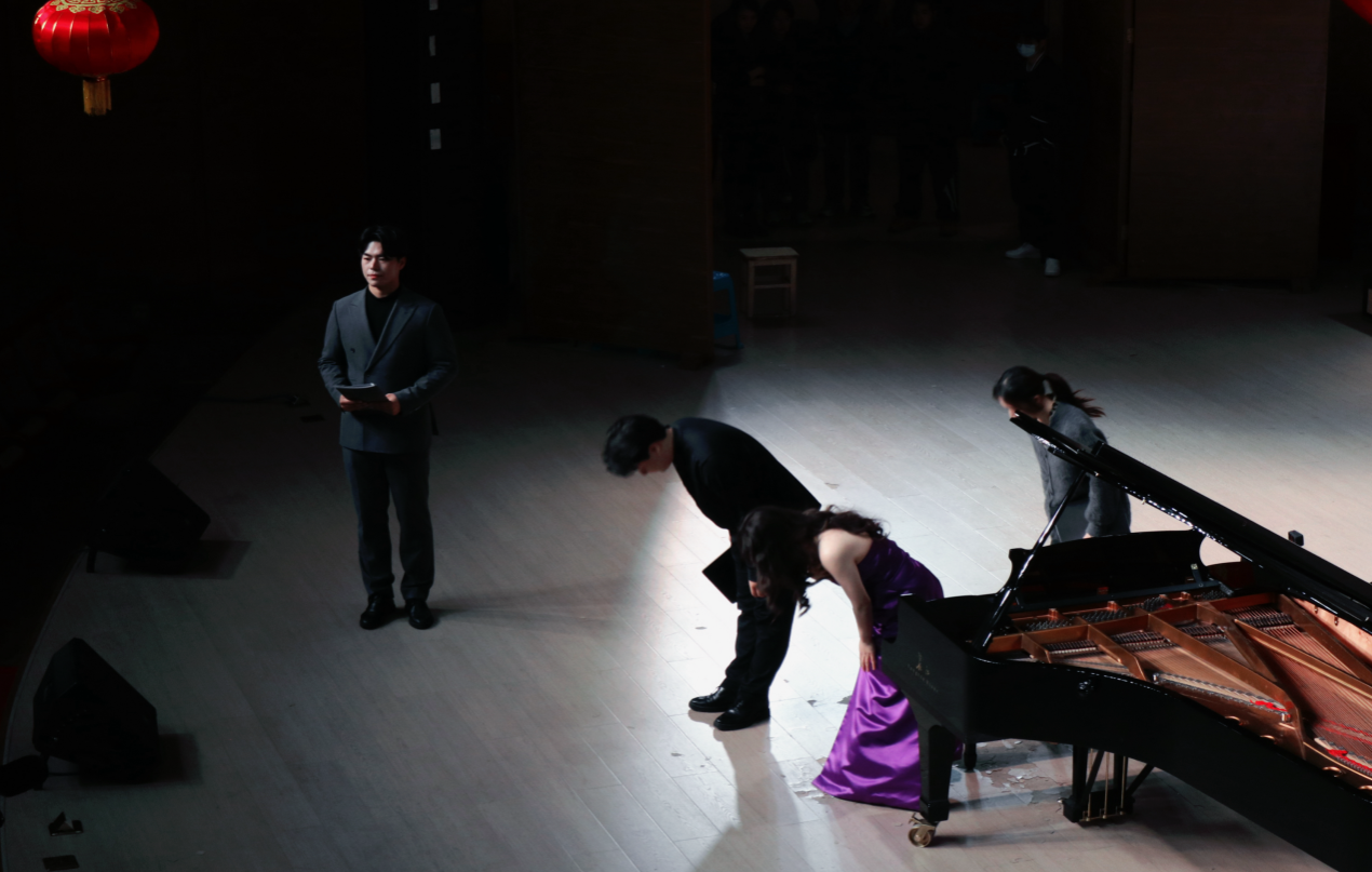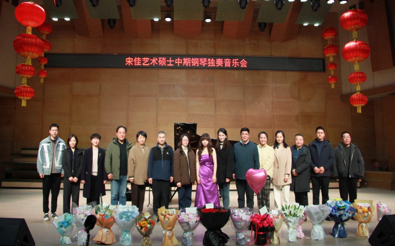 整场音乐会结构严谨、曲目丰富,既体现了宋佳在钢琴演奏技巧上的扎实功底,也展现了她对不同时期、不同风格作品的深入理解与艺术诠释。演出结束后,现场观众报以热烈掌声,领导与教师上台与宋佳合影留念。