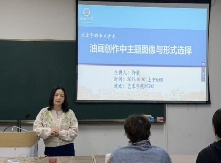 (通讯员 许敏)2025年10月30日上午8点,艺术学院美术系许敏副教授以“油画创作中主题图像与形式选择”为题,在艺术学院M302举办讲座。本次讲座主要由许敏副教授与24级美术与书法方向研究生共同与会探讨。