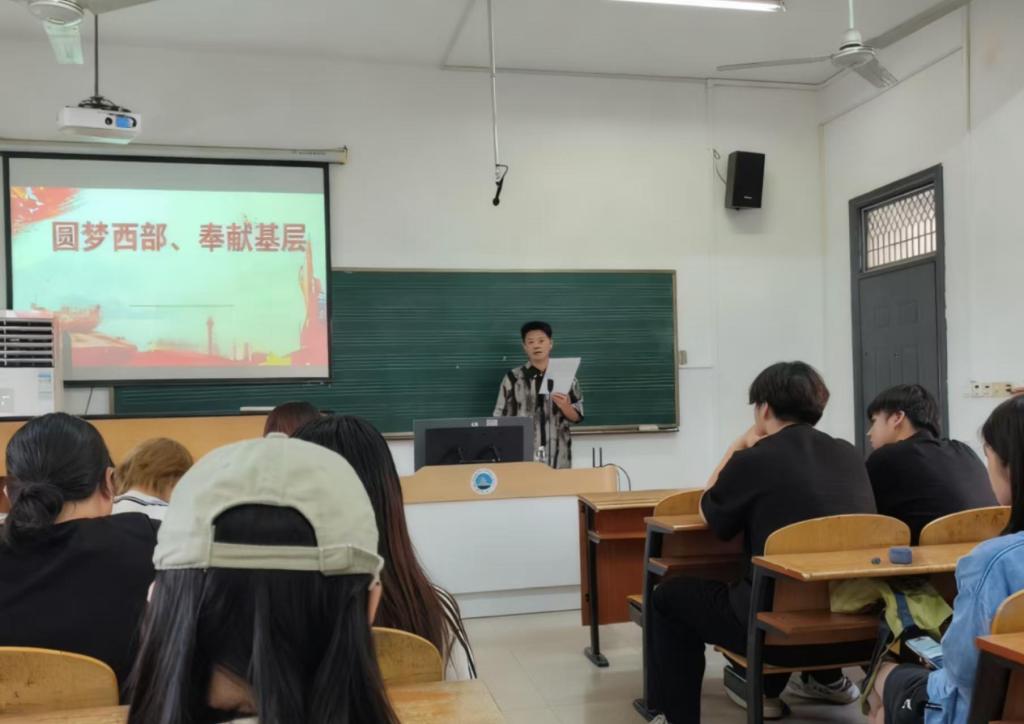 分享结束后,主持人鼓励在场学生以向鹏飞等优秀学子为榜样,树立正确的就业观与价值观,将个人专业所长与国家发展需求紧密结合。学院也将持续为有志于西部及基层就业的学生提供政策解读、岗位对接、技能提升等全方位支持,为学生扎根基层、建功立业保驾护航。