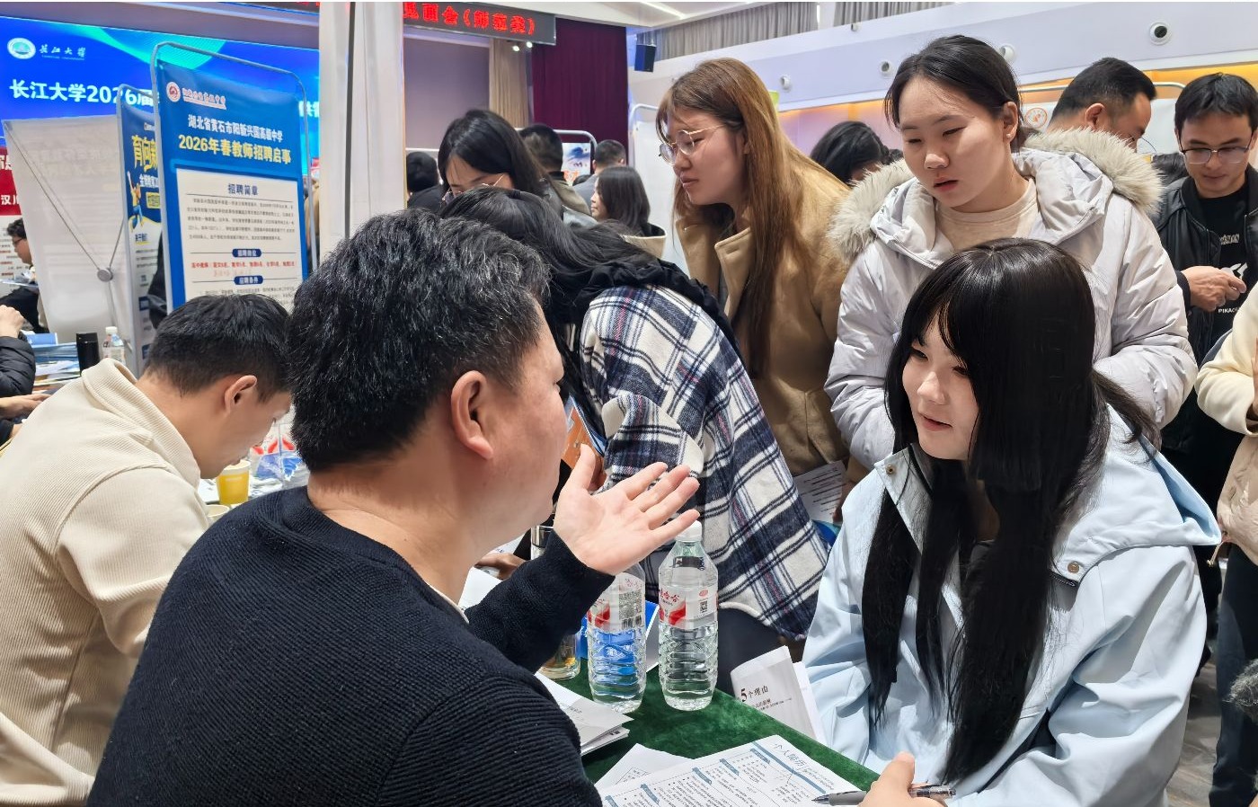 招聘会现场人头攒动、气氛热烈。毕业生们手持精心准备的简历,有序穿梭于各企业展位之间,主动与招聘代表交流洽谈,详细咨询岗位需求、薪资待遇、编制情况、职业发展前景等核心问题,积极展示自身的专业素养、教学实践能力与综合育人潜质。来自教育领域的用人单位代表耐心细致地介绍单位办学特色、岗位招聘要求及人才引进政策。现场互动频繁,供需双方实现高效对接、双向奔赴。十堰东方远志学校朱老师表示:“长江大学师范类专业底蕴深厚,毕业生师德素养高、实践能力强,在教育系统内口碑极佳,我们每年都会专程来校招聘,希望能吸纳更多优秀人才加入。”